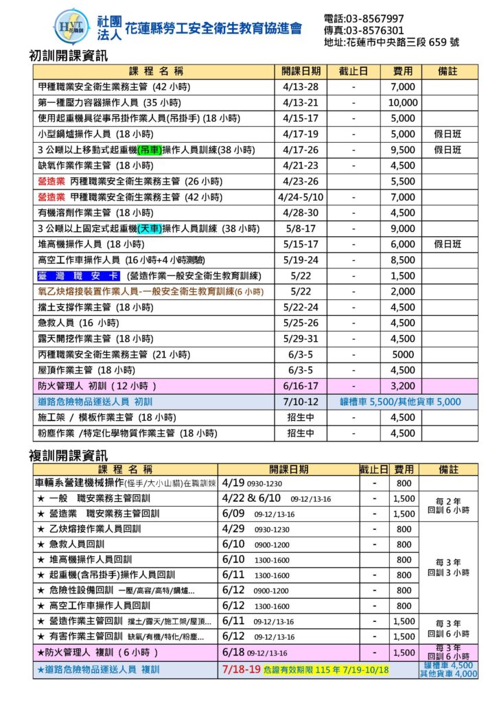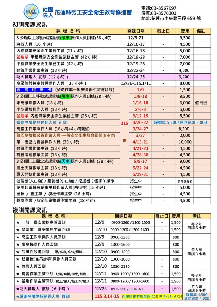 社團法人花蓮縣勞工安全衛生教育協進會