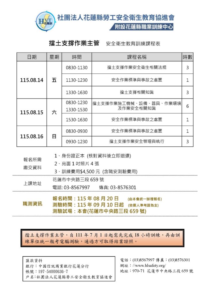 一、社團法人花蓮縣勞工安全衛生教育協進會(下稱本會)為提供課程報名相關服務,並確保報名台端之利益,將遵循個人資料保護法及相關法令之規定,蒐集、處理及利用報名學員所提供之個人資料,包括台端姓名、性別、出生年月日、身分證字號、學歷、行動電話、電子郵件帳號、戶籍地址、通訊住址、服務機構、職稱、受訓紀錄等。二、依據個資法第三條規定,台端就本會保有台端之個人資料得行使下列權利: (一)查詢或請求閱覽。 (二)請求製給複製本。 (三)請求補充或更正。(四)請求停止蒐集、處理或利用。(五)請求刪除。三、在台端就其個人資料依個人資料保護法第三條之規定,請求停止蒐集、處理或利用或請求刪除前,惟依法本會因執行業務所必須者,得不依台端請求為之。四、台端得自由選擇是否提供個人資料或行使個人資料保護法第三條所定之權利,但報名學員提供資料不足或有其他冒用、盜用、不實之情形,台端將無法進行必要之審核及處理作業,致無法提供台端相關服務。