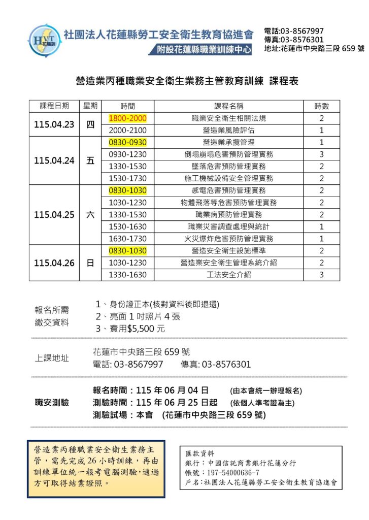 1150423-1150426營造業丙種職業安全衛生業務主管