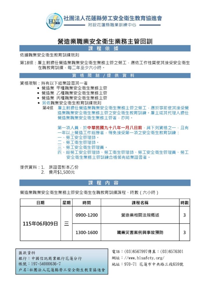 1150609營造業職業安全衛生業務主管複訓