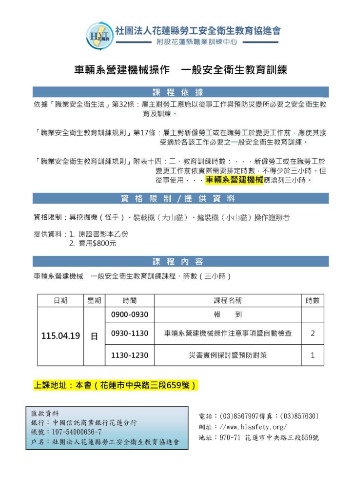 一、社團法人花蓮縣勞工安全衛生教育協進會(下稱本會)為提供課程報名相關服務,並確保報名台端之利益,將遵循個人資料保護法及相關法令之規定,蒐集、處理及利用報名學員所提供之個人資料,包括台端姓名、性別、出生年月日、身分證字號、學歷、行動電話、電子郵件帳號、戶籍地址、通訊住址、服務機構、職稱、受訓紀錄等。二、依據個資法第三條規定,台端就本會保有台端之個人資料得行使下列權利: (一)查詢或請求閱覽。 (二)請求製給複製本。 (三)請求補充或更正。(四)請求停止蒐集、處理或利用。(五)請求刪除。三、在台端就其個人資料依個人資料保護法第三條之規定,請求停止蒐集、處理或利用或請求刪除前,惟依法本會因執行業務所必須者,得不依台端請求為之。四、台端得自由選擇是否提供個人資料或行使個人資料保護法第三條所定之權利,但報名學員提供資料不足或有其他冒用、盜用、不實之情形,台端將無法進行必要之審核及處理作業,致無法提供台端相關服務。